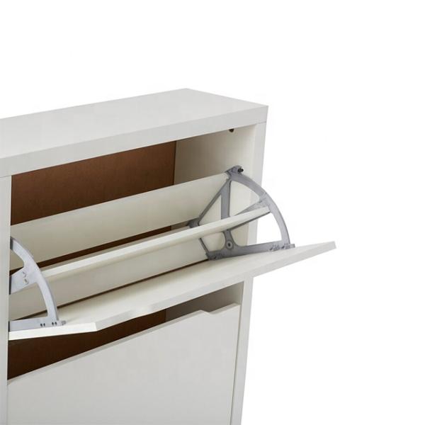 Customized Contemporary White Wooden Flip Down closed Shoe Rack Furniture 2 Tier For hallway Images |